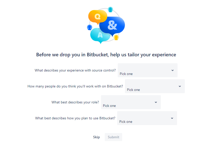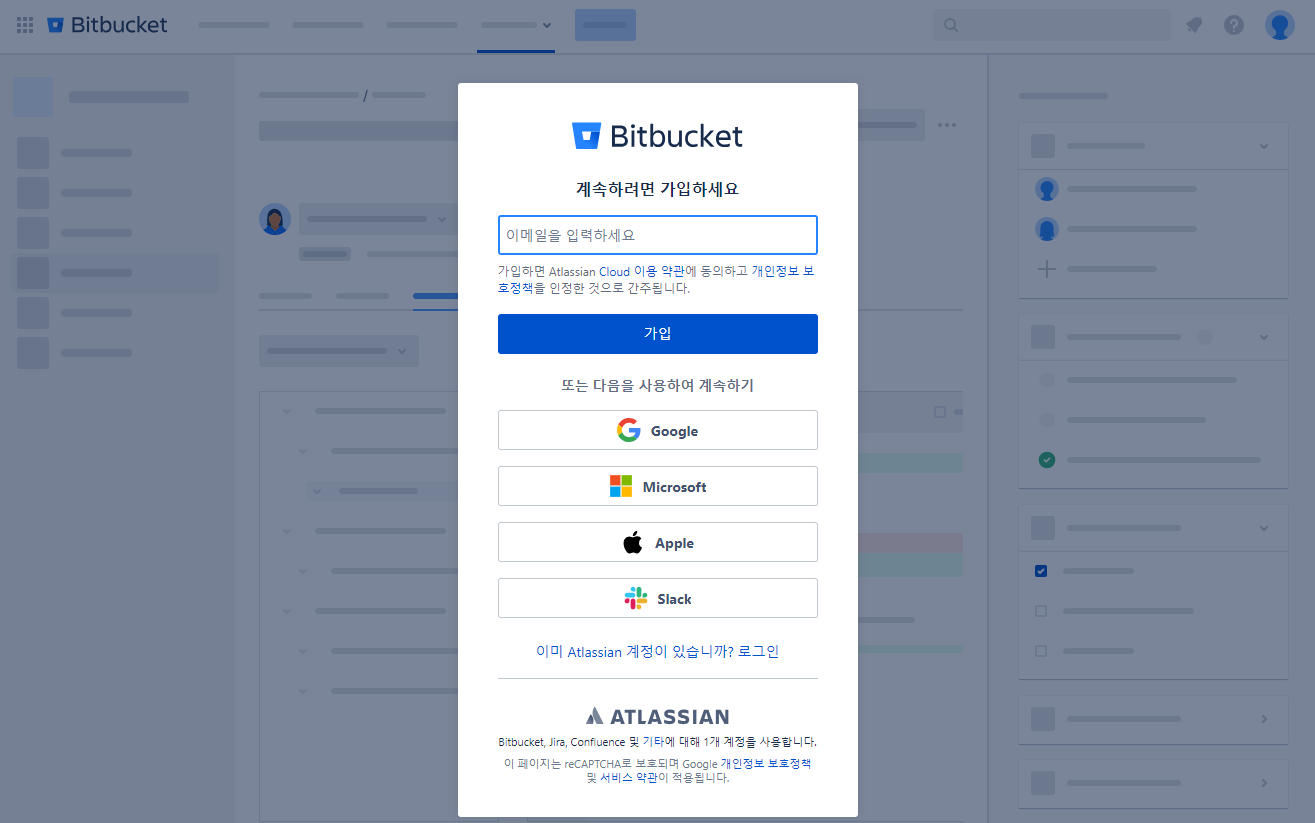 비트버켓 클라우드는 Jira, Confluence 와 다르게 별도로 가입 및 Workspace 생성이 필요합니다. 비트버켓의 사용자 권한 관리는 관리 포탈에서 수행하실 수 있습니다. (https://admin.atlassian.com)